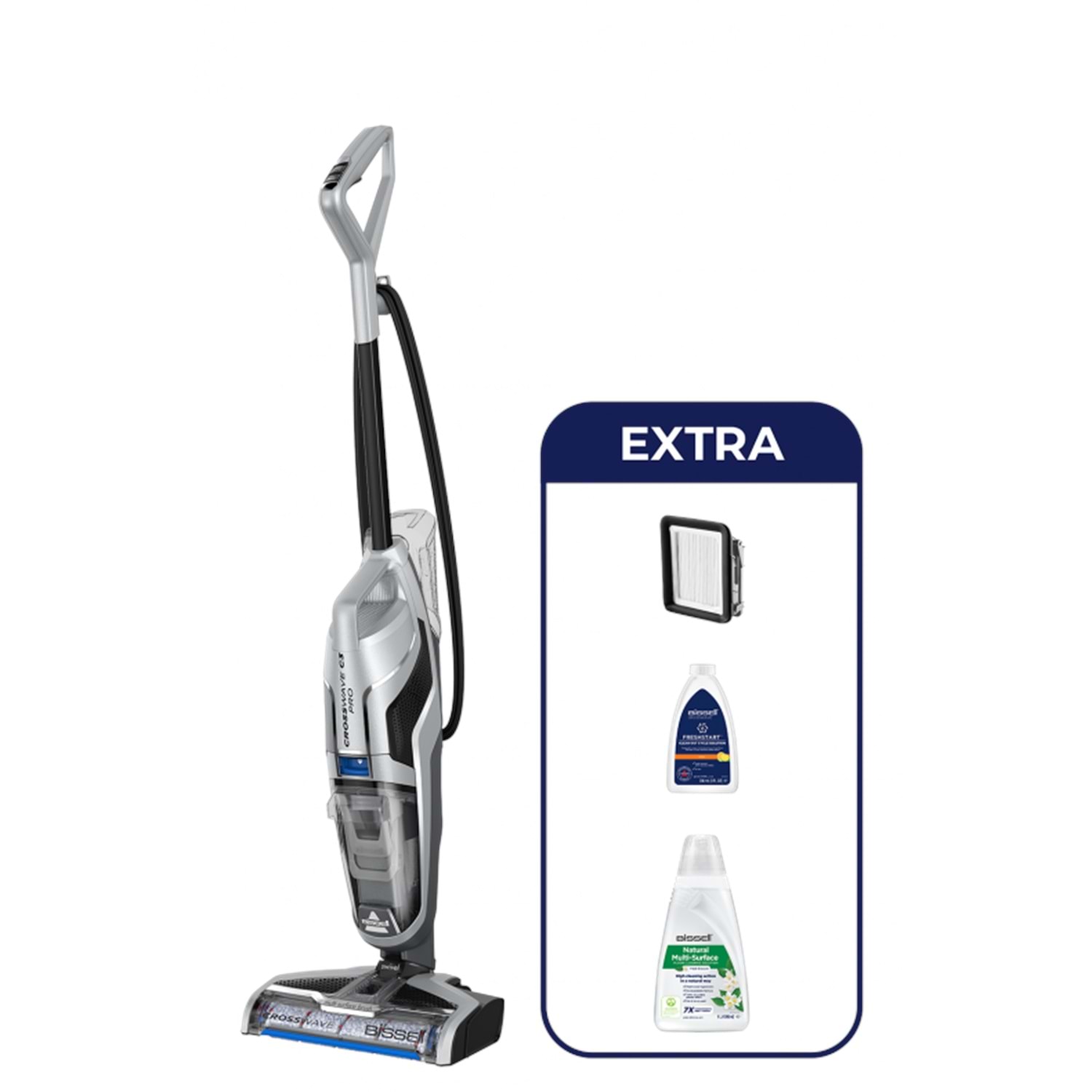 - 1L Doğal Temizlik Solüsyonu (dahil): Zeminlerinizi Crosswave Dik 3'ü 1 arada ıslak ve kuru elektrikli süpürge ve daha da iyi bir temizlik sonucu için doğal bazlı uyumlu temizlik solüsyonu ile temizleyin.